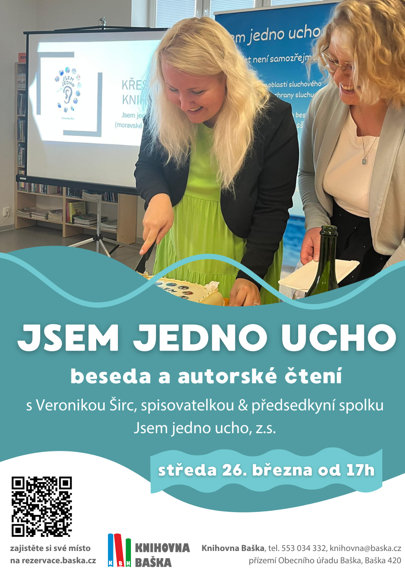 Již několik let sbírá těžko uvěřitelné příběhy osob se sluchovým handicapem a sdílí je dále skrze knížky a besedy - a už na konci března zavítá spisovatelka Veronika Širc i k nám do Bašky. Jak se žije nejen se sluchadlem a jak si můžete chránit svůj sluch, to vše a mnohem více přijďte zjistit do knihovny.