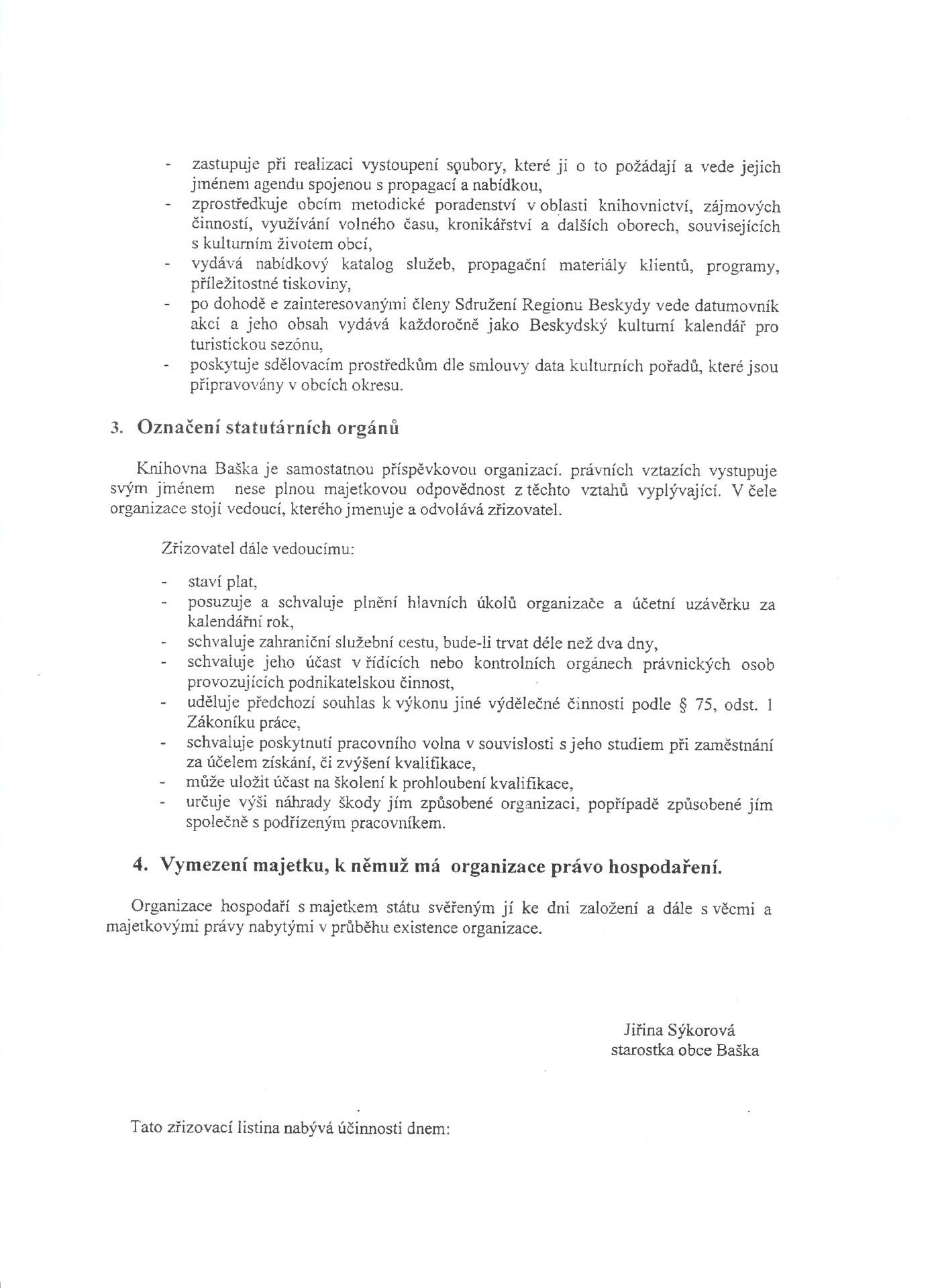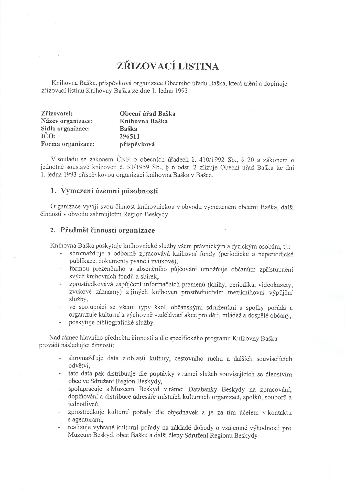 Zřizovací listina Knihovny Baška